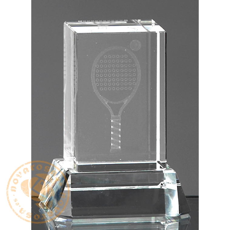 Trofeo de cristal con motivo de pádel grabado en el interior en 3D. Incluye estuche.